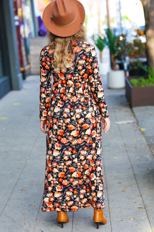 Diva Days Black Floral Long Sleeve Maxi Dress