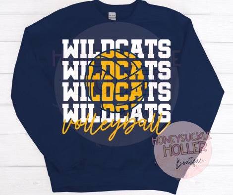 Stacked Wildcats Navy and Gold with Hearts and Mascot