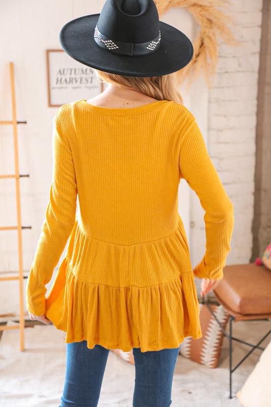 Sunflower Hacci Ribbed Tiered Babydoll Top