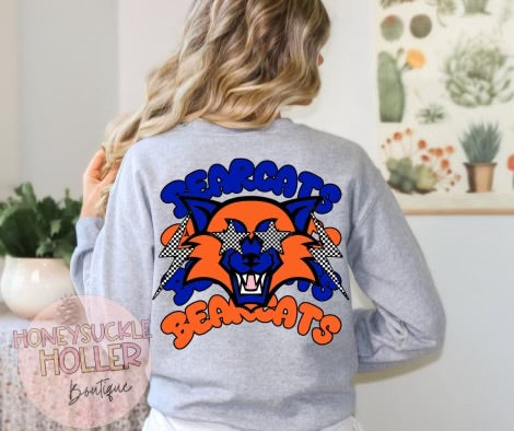 Royal and Orange Bearcats Stacked Checkered Mascot Sunglasses on Grey