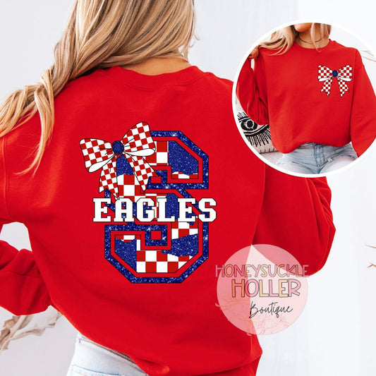Red and Blue Checkered Bow With Bow Front & Back Design Varsity Letter - S Eagles